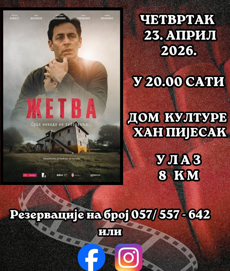 Током априла и маја у Хан Пијеску биће организован разноврстан културни програм који доноси концерт духовне музике, пројекцију филма и популарну стенд-ап представу.