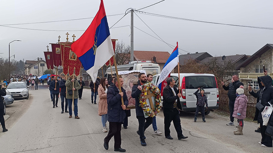 Претходно је у Храму Светог свештеномученика Петра Дабробосанског служена Света литургија и освештана вода, а потом је литија кренула од храма до Моста Ратка Мочевића, гдје је пливање одржано.