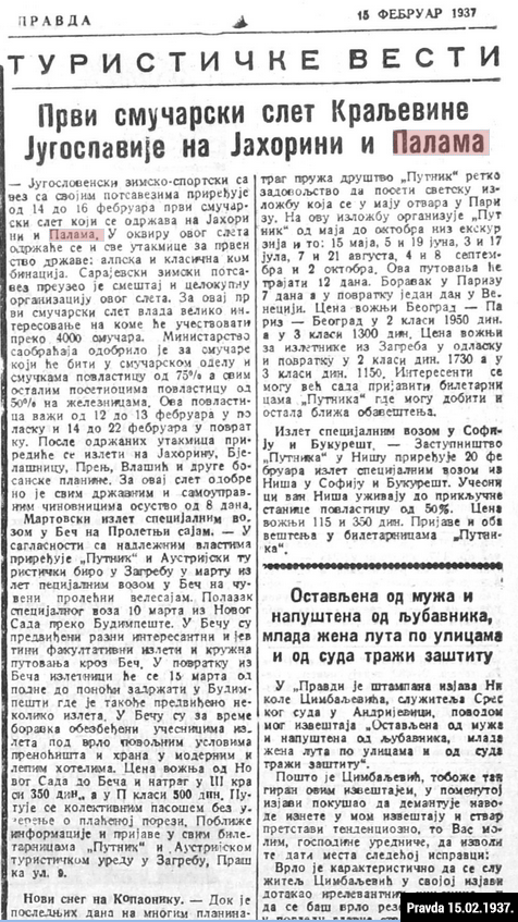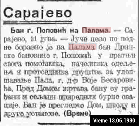 Otvaranje prve škole u Palama, izgradnja i osveštanje spomenika stradalima u Prvom svjetskom ratu, razvoj sokolskog pokreta, prvi smučarski sletovi i razvoj turizma na Jahorinu te potresne vijesti iz crne hronike zauvijek su ovjekovječeni u dnevnim novinama toga vremena.