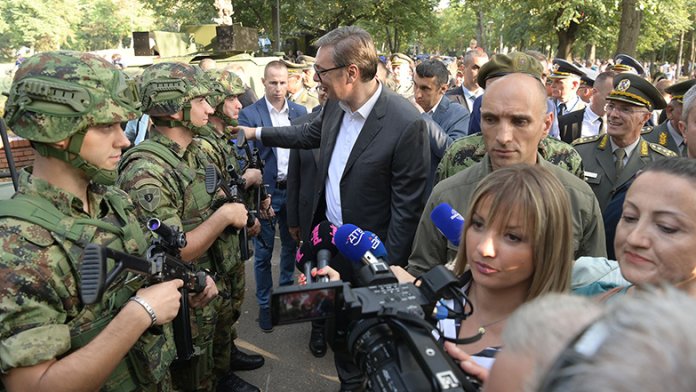 БЕОГРАД – Предсједник Републике Српске Милорад Додик и предсједник Србије Александар Вучић присуствују статичком приказу средстава наоружања и војне опреме Војске Србије на полигону на Топчидеру у Београду.