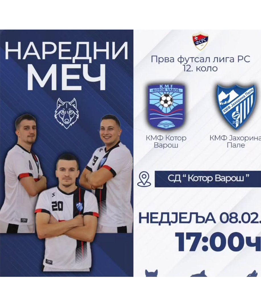 У Првој футсал лиги Републике Српске на распореду су мечеви 12. кола, КМФ „Јахорина“ у недјељу путује у Котор Варош на сусрет са истоименом екипом.