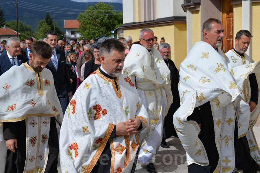 Sveta arhijerejska liturgija je održana u Hramu Svetog Petra Sarajevskog Zimonjića u Vojkovićima, a obred lomljenja slavskog kolača te prigodan program uz dodjelu priznanja zaslužnim pojedincima i kolektivima biće obavljen u konačištu „Topalović“.