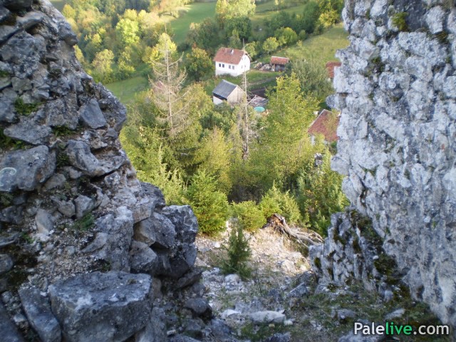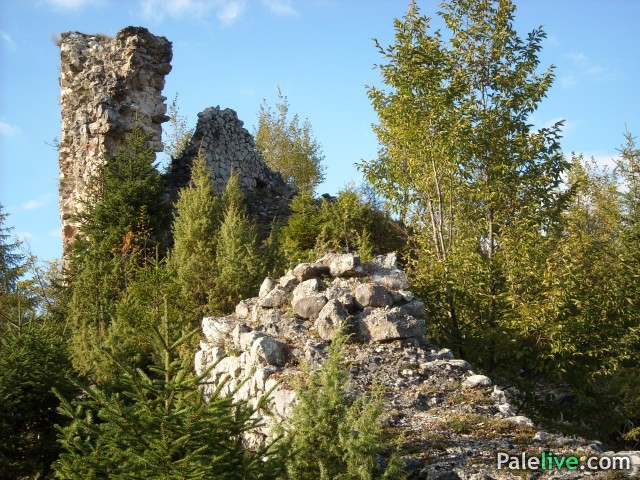 Gornji dio grada se sastojao od dvije odbrambene kule i prostorija za stanovanje. Sa južne strane ulaz je branila osamljena, vrlo jaka, četverostrana kula – donžon, čiji su zidovi bili daleko jači od ostalih i sa koje se kontrolisao ulaz u Gradinu. Kula se spajala sa ostalim dijelom grada samo jednim zidom, debljine 1,40 m, kojim se moglo preći u grad. Pored tog zida je bila i ulazna kapija, a na tom mjestu je i gradski zid zadebljan 2 metra. Kroz kapiju se ulazilo u manje dvorište. Sa lijeve strane je veliki zid od 8 metara koji postoji i danas, a na njemu su vidljivi ostaci ležišta za podnice prvog sprata. Sa vanjske strane se vide ostaci dva primitivno zasvedena podrumska prozora, zapravo rupe, koje su davale malo svjetla.