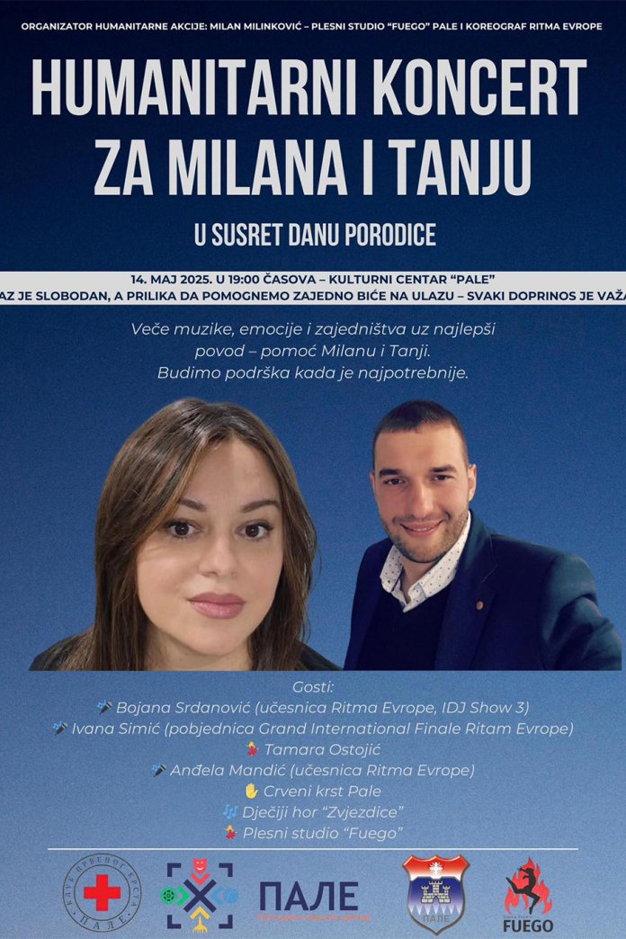 Концерт је планиран у 19.00 часова, а из Плесног студија „Фуего“ позивају све суграђане да дођу, заједно покажу хуманост и подрже Тању и Милана на путу ка оздрављењу.