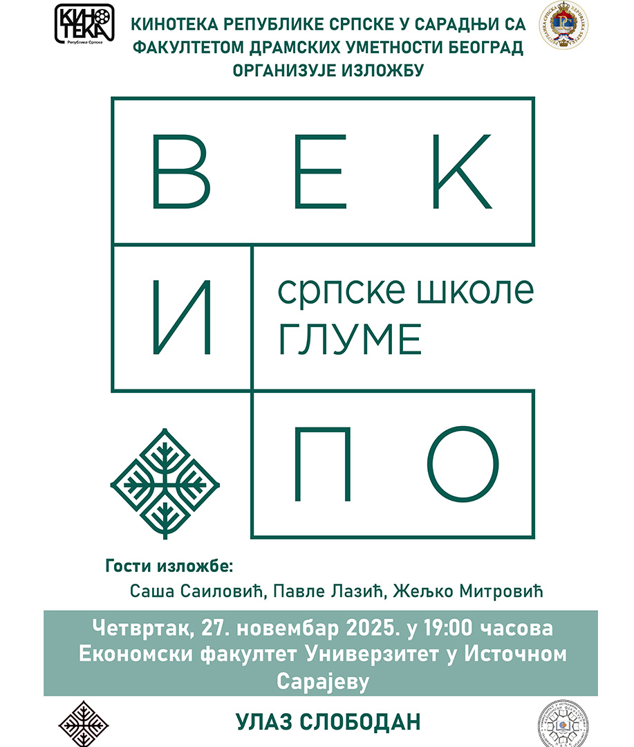 Кинотека Републике Српске, у сарадњи са Факултетом драмских уметности у Београду, организује изложбу „Век и по српске школе глуме“, чије је свечано отварање заказано за 27. новембар 2025. године у 19.00 часова, у холу Економског факултета Пале Универзитета у Источном Сарајеву.