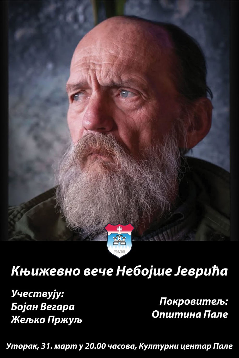 У Културном центру Пале вечерас ће бити одржано књижевно вече посвећено стваралаштву Небојше Јеврића, једног од препознатљивих аутора савремене књижевне сцене.