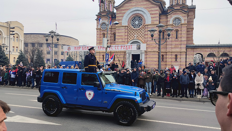 Defile, koji predvodi Počasna jedinica Ministarstva unutrašnjih poslova Republike Srpske, ove godine je posebno svečan jer prošle nije održan zbog pandemije virusa korona, a u njemu učestvuje 2.700 učesnika. Prvo vozilo despot u konvoju nosi ime Svetog arhiđakona Stefana.