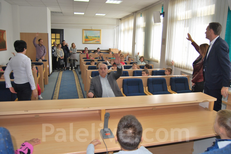 Jugović je rekao novinarima da je sa saradnicima želio da bude domaćin mališanima, i upozna ih sa izgledom sale Skupštine opštine.