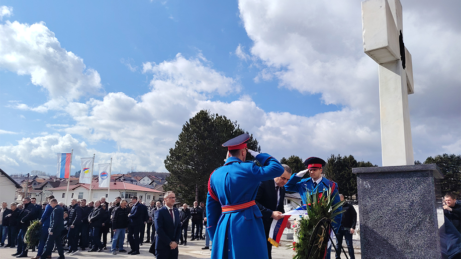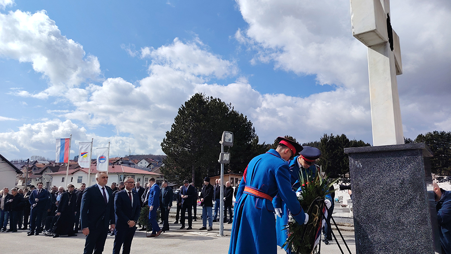 СОКОЛАЦ – Предсједник Владе Републике Српске Саво Минић и министар рада и борачко-инвалидске заштите Радан Остојић положили су данас вијенац код централног крста на Војничком спомен-гробљу Нови Зејтинлик на Сокоцу.