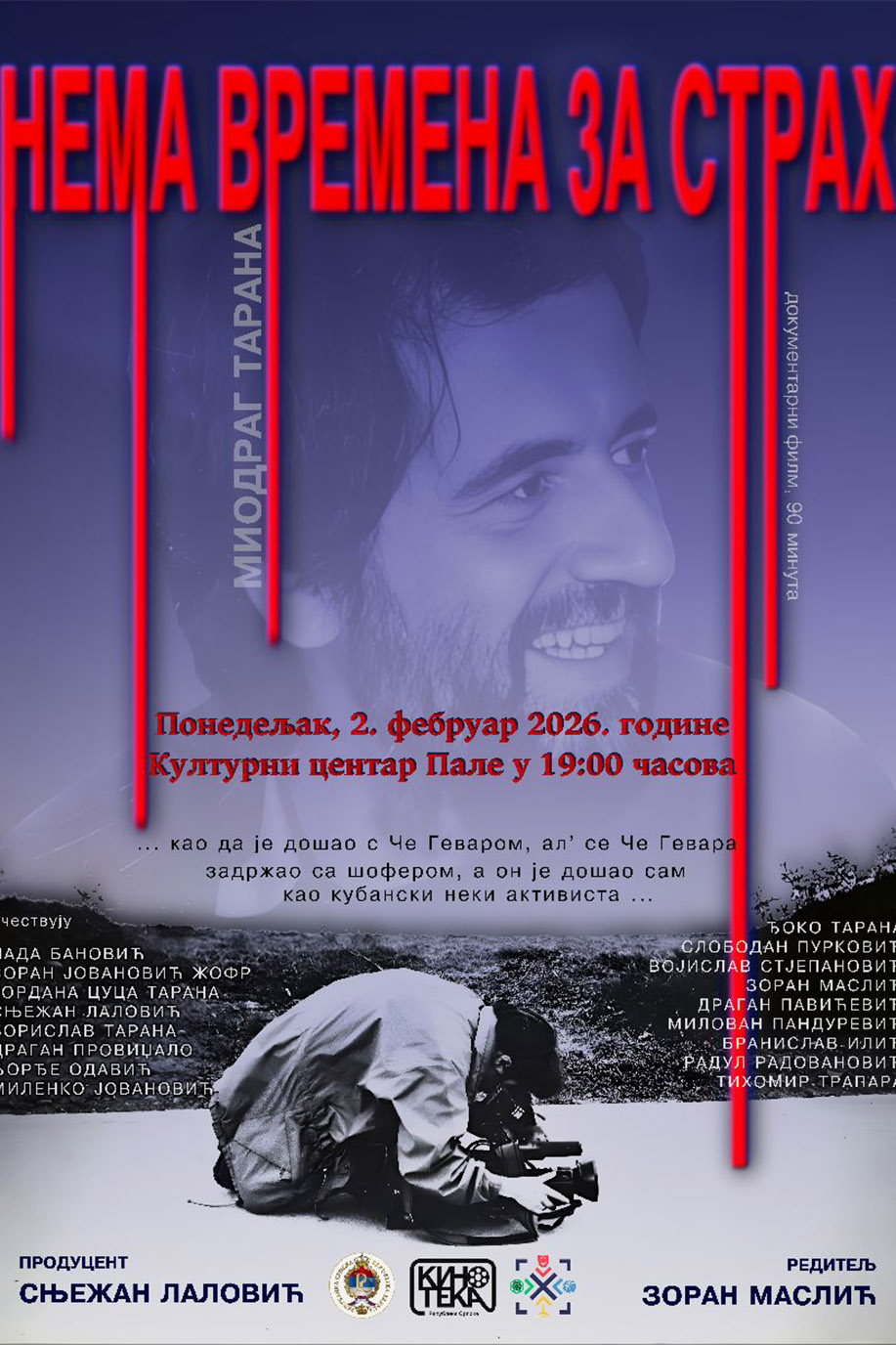 Документарни филм „Нема времена за страх“ доноси драматичну и снажну причу о једном од најталентованијих филмских и културних радника Републике Српске и некадашње Југославије — човјеку који је истину сматрао обавезом, а камеру оружјем памћења.