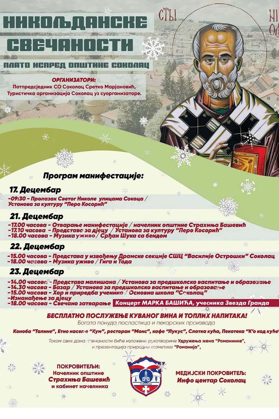 СОКОЛАЦ – На Сокоцу ће од 17. до 23. децембра бити одржане традиционалне „Никољданске свечаности“ за које је припремљен богат програм за све узрасте, уз презентације и бесплатно послужење.