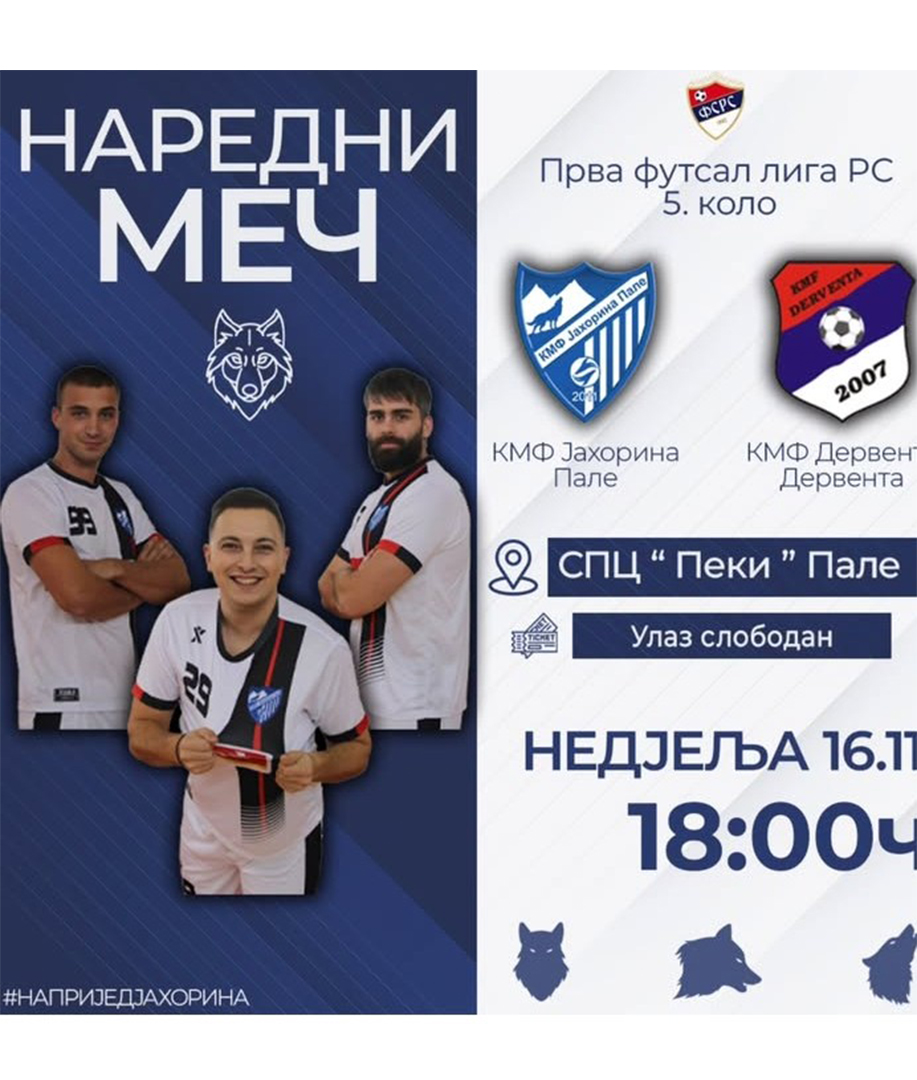Дуел измећу футсалера „Јахорине“ и „Дервенте“ игра се у паљанској љепотици, дворани „Пеки“ у недјељу 16. новембра са почетком у 18.00 часова.