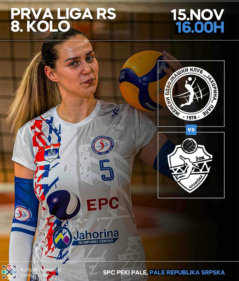 У осмом колу Прве лиге Републике Српске у суботу 15. новембра у Палама у дворани „Пеки“ одбојкашице „Јахорине“ снагу ће одмјерити са гошћама из Градишке. Почетак утакмице између ЖОК „Јахорина“ и ОК „Градишка“ заказан је за 16.00 часова.