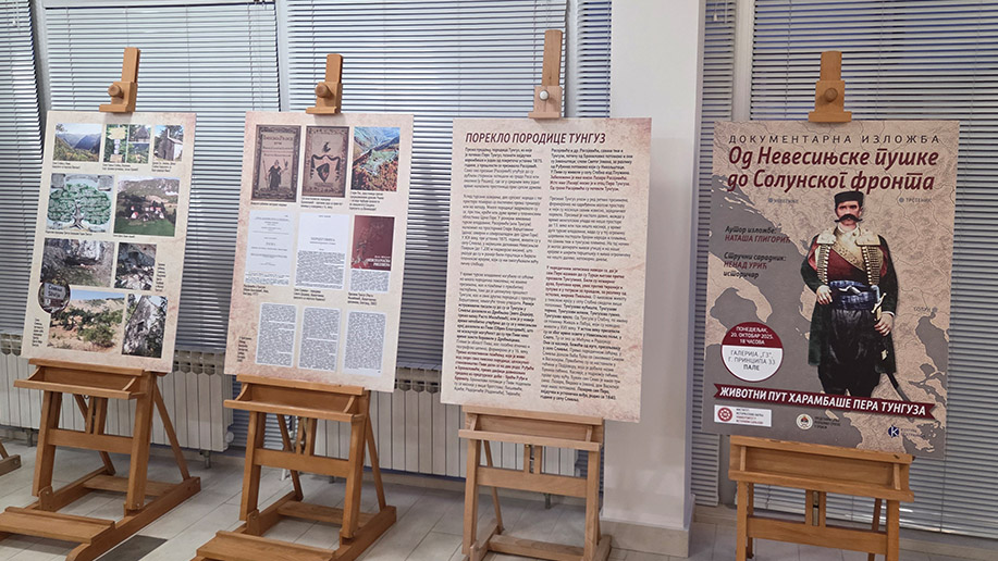У просторијама Галерије „Г3“ вечерас је отворена изложба под називом „Од Невесињске пушке до Солунског фронта“ у организацији Института историјских наука Универзитета у Источном Сарајеву, посвећена животу и дјелу херцеговачког харамбаше Пера Тунгуза, једног од најзначајнијих учесника Херцеговачког устанка 1875. године.