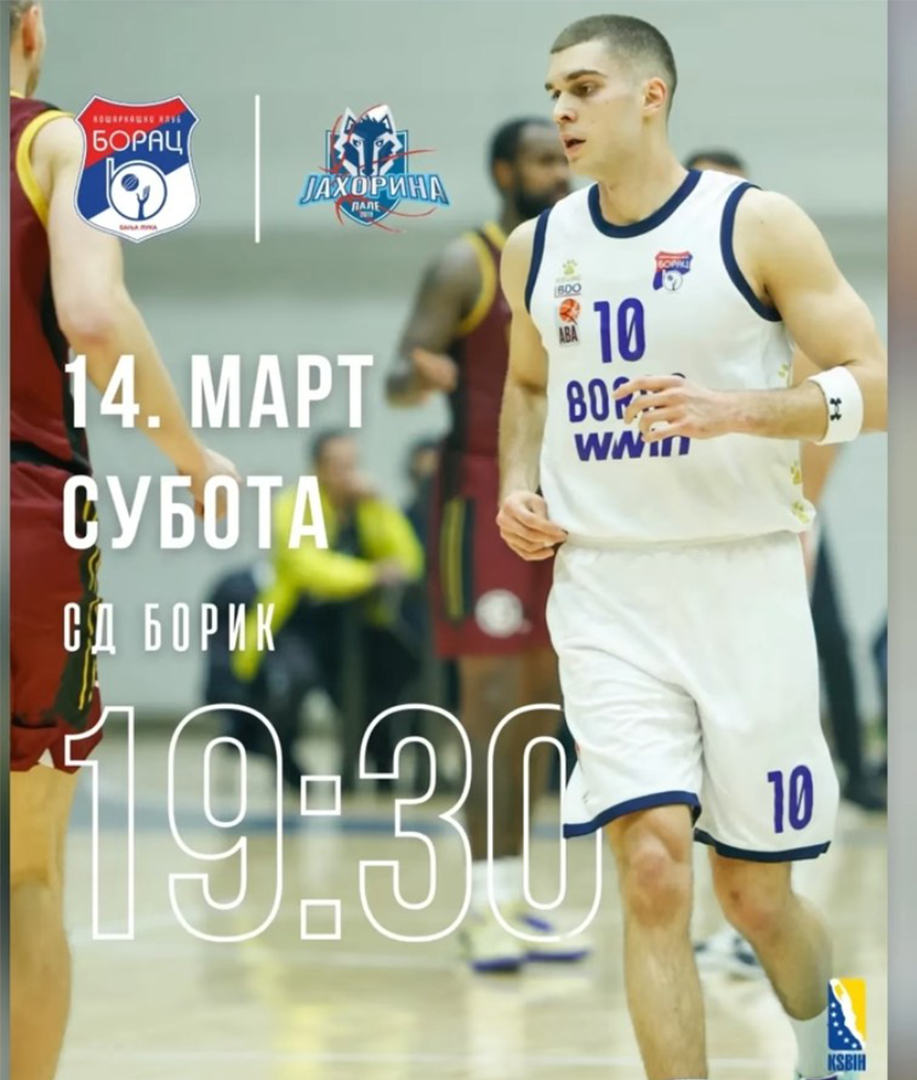 Утакмица између екипа „Борца“ и „Јахорине“ на распореду је данас, у суботу 14. марта у Бањој Луци у СД „Борик“ са почетком у 19.30 часова.