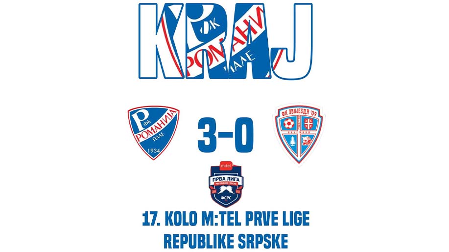 Фудбалери „Романије“ у мечу посљедњег 17. кола, јесењег дијела првенства Републике Српске савладали су данас у Лукавици састав „Звијезде 09“ из Етно села Станишићи са 3:0 (1:0).