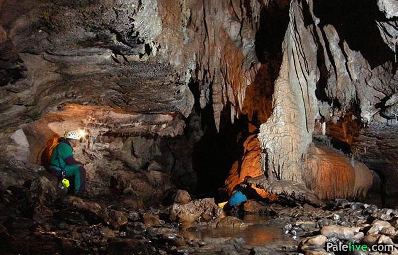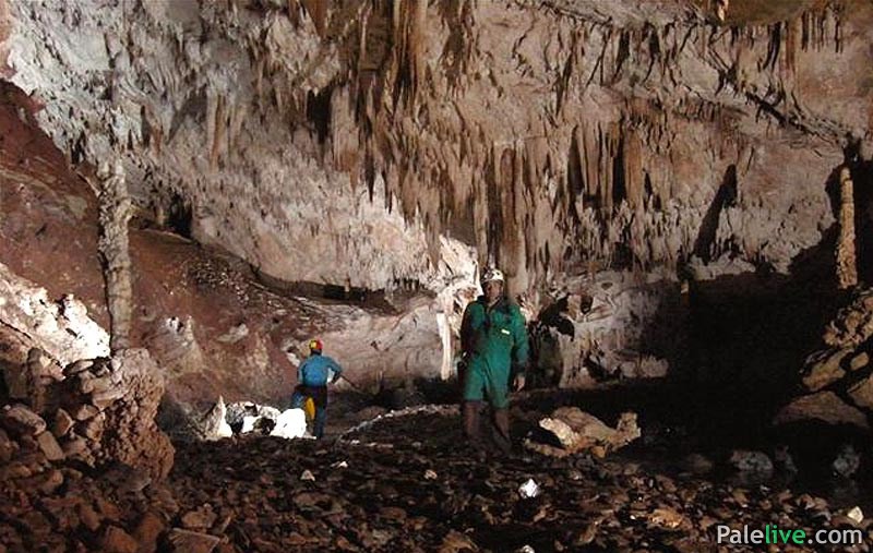 Dvorana dalje nastavlja lagano savijajući desno, gubeći na visini plafona do 6 metara, sužavanjem u prolaz 10 metara širine, dužine 40 metara. Pod cijelog ovog fosilnog dijela prekriven je kadama koje su ispunjenje vodom ili su bile potpuno suve. Nakon prolaska kroz prolaz, preko kada ispunjenih vodom, dolazi se u drugu dvoranu širine 15 metara u kojoj je plafon visine 15-tak metara. Dvorana je veoma bogata pećinskim nakitom poput pizolita, velikog broja cjevčica, a stalaktiti i stalagmiti preovladavaju koji u par navrata prave stubove.