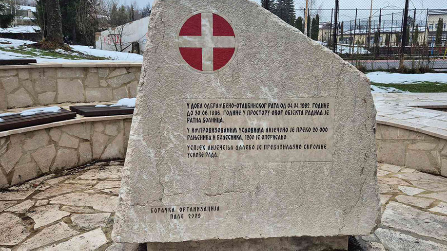 Спомен-плоча симболизује значај ове установе током Одбрамбено-отаџбинског рата и свједочи о надљудским напорима љекара и здравственог особља у лијечењу српских бораца и цивила.