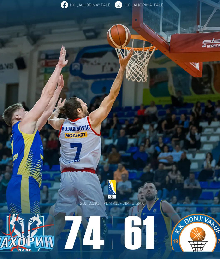 У утакмици 24. кола Премијер лиге БиХ синоћ у Палама кошаркаши „Јахорине“ савладали су екипу „Прома“ из Доњег Вакуфа 74:61 (23:14, 19:12, 18:17, 14:18). Паљани су тако уписали нову 14. првенствену побједу, уз су обезбиједили и пласман у плеј-оф.