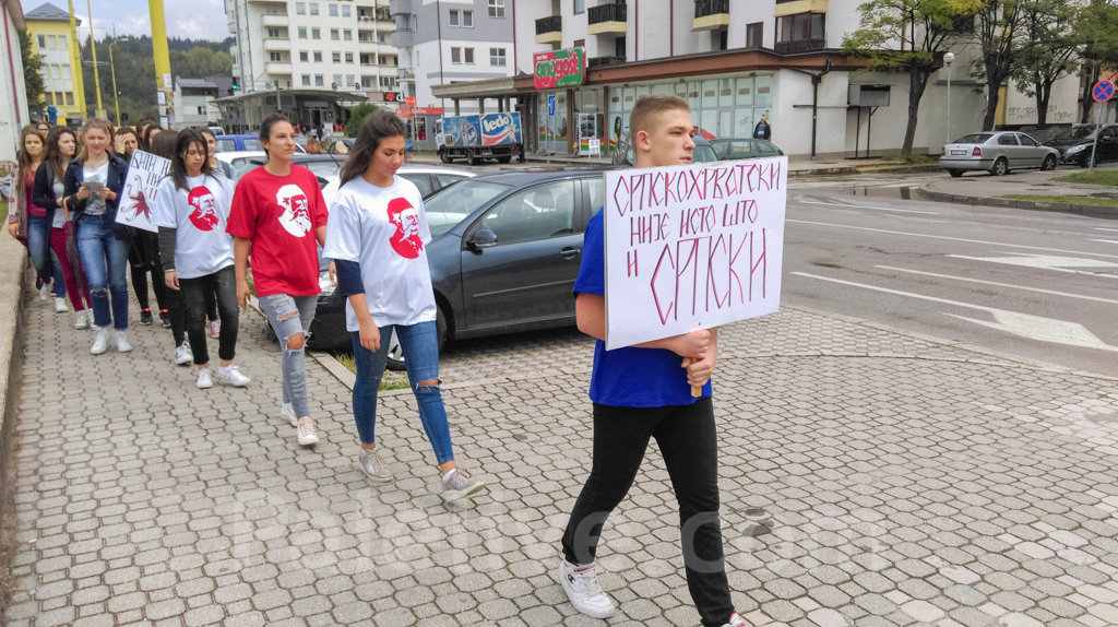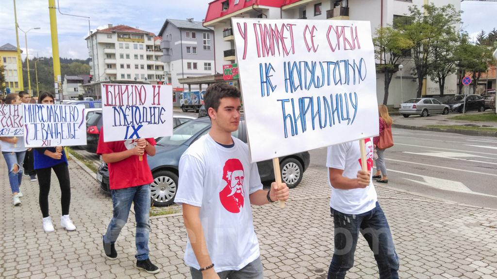 Učenica ove škole Jelena Kovač rekla je da u dramsko-recitatorskoj sekciji organizuju brojne aktivnosti za zaštitu ćirilice i da im za to nisu potrebni posebni povodi.