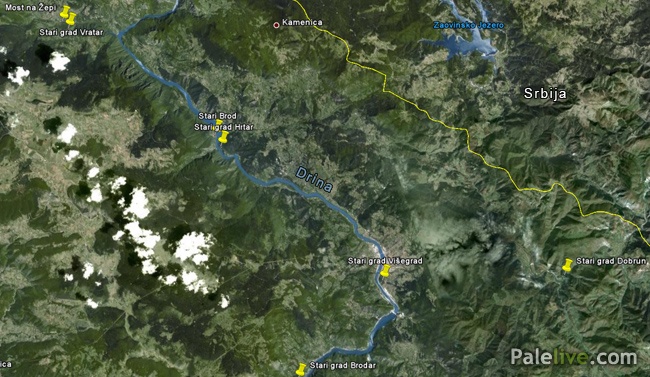 Pogled sa Hrtar grada na Drinu u pravcu Višegrada