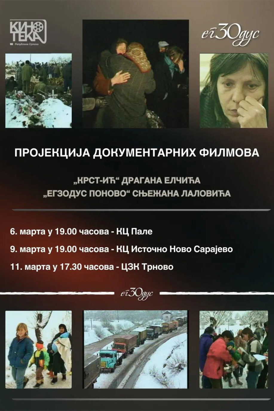 На Палама ће сутра, поводом обиљежавања 30 година од егзодуса Срба из Сарајева, бити приказани кратки документарни филмови „Крст-ић“ и „Егзодус поново“ режисера Драган Елчић и Сњежан Лаловић.