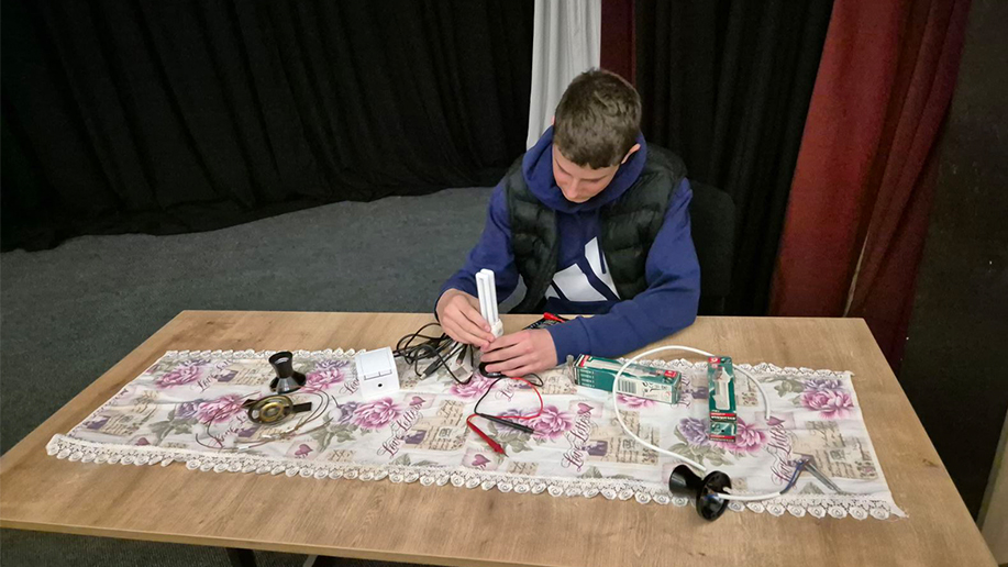 Ученик Основне школе „Пале“ Петар Дрињак учествовао је у практичном дијелу програма, гдје је представио неке од Теслиних изума.