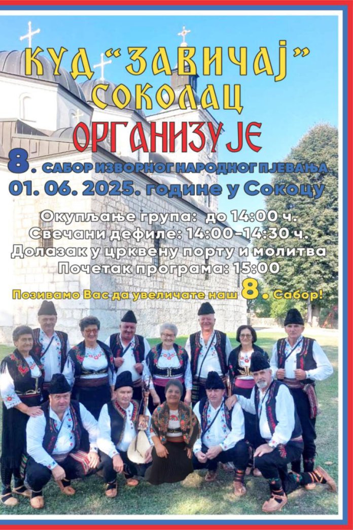СОКОЛАЦ – Осми Сабор изворног народног пјевања биће одржан на Сокоцу у недјељу, 1. јуна, у порти Цркве Светог пророка Илије, најавили су из локалног Културно-умјетничког друштва /КУД/ „Завичај“.