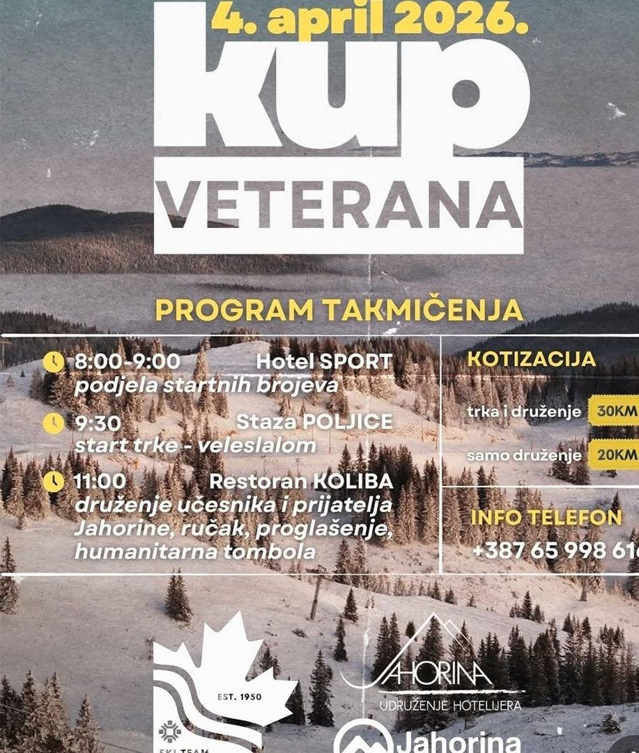 Традиционална трка Kуп ветерана „Јахорина 2026“ биће одржана у суботу, 4. априла на стази „Пољице“.