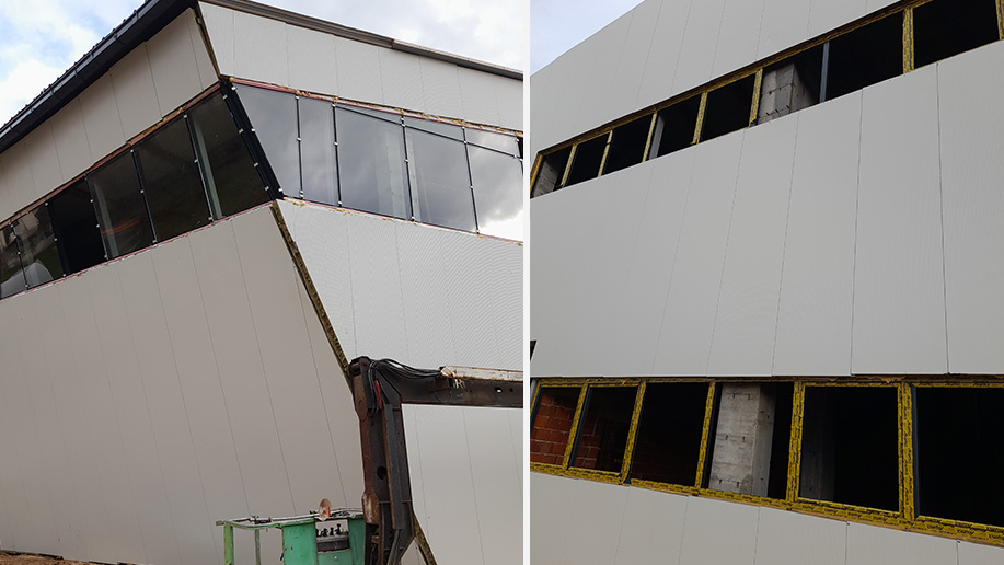 Након постављених фасадних панела на објекту Факултета физичког васпитања и спорта у Палама почело је и постављање стакала, али због временских прилика није у цјелости приведено крају.